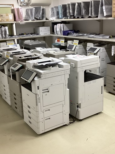 3Fの商品倉庫には複合機の商品在庫が22台。