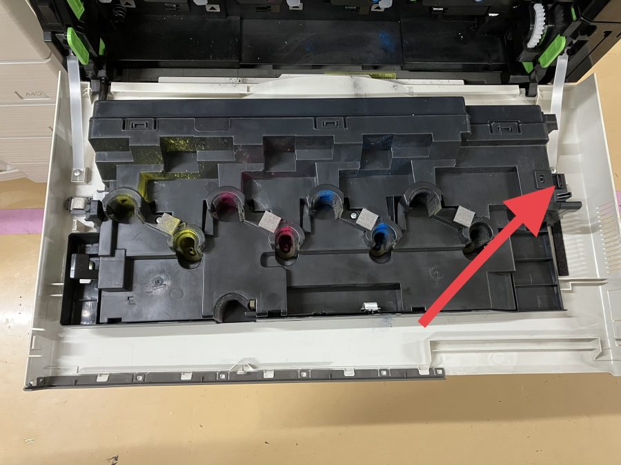 本体扉を開けた内にセットしてある回収トナー容器の交換が必要です。