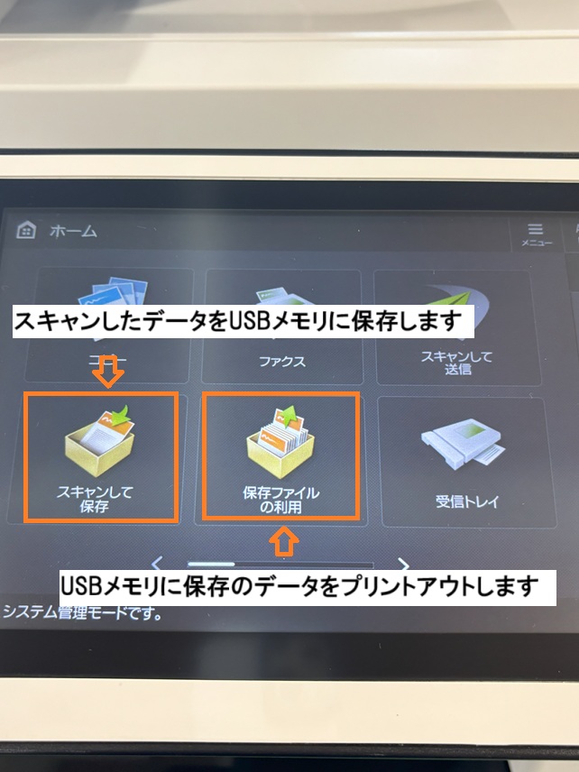 なく直接、複合機からUSBメモリに保存が出来ます。