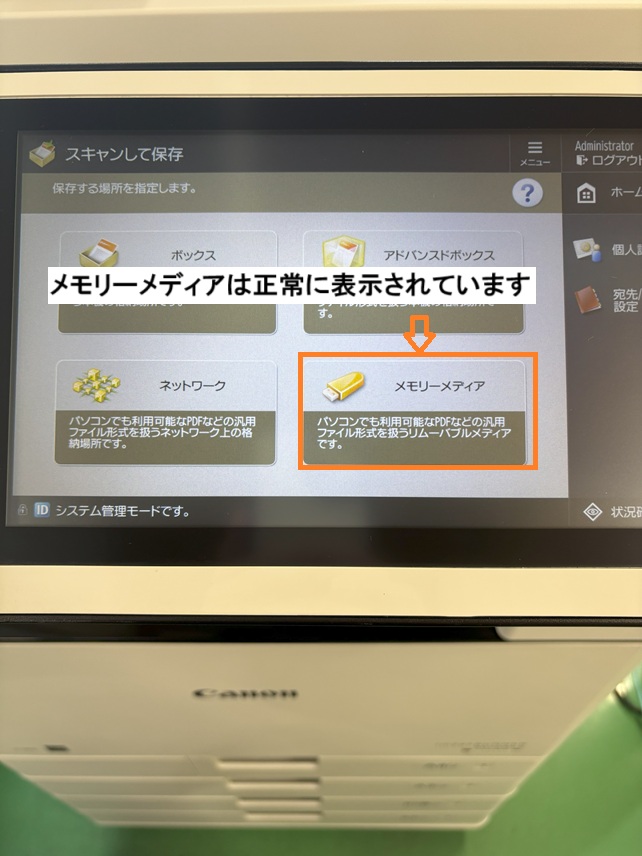 そうなんです、USBメモリにスキャンしたデーターを保存するテストを